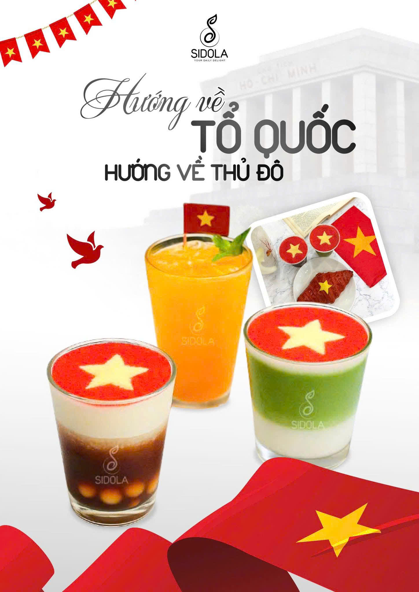 Quốc khánh là dịp để chúng ta cùng nhìn lại, tự hào về hành trình của dân tộc và tận hưởng khoảnh khắc đoàn viên, sum vầy. Nhân ngày đặc biệt này, SIDOLA Coffee muốn gửi đến bạn không chỉ ly cà phê đậm đà hay tách trà dịu nhẹ, mà còn là một không gian để bạn và những người thân yêu cùng nhau lưu giữ kỷ niệm.